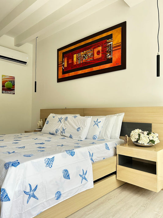 Sabanas 100% algodón 500 hilos Figuras marinas celeste