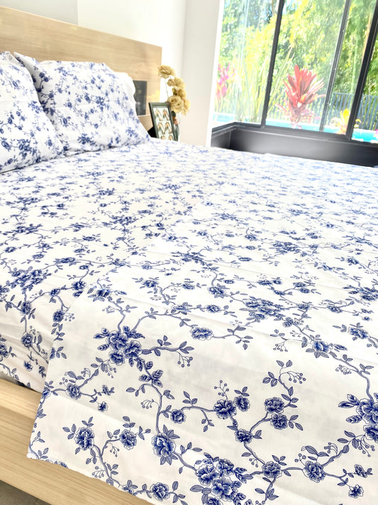 Sabanas 100% algodón 500 hilos Jardín Azul