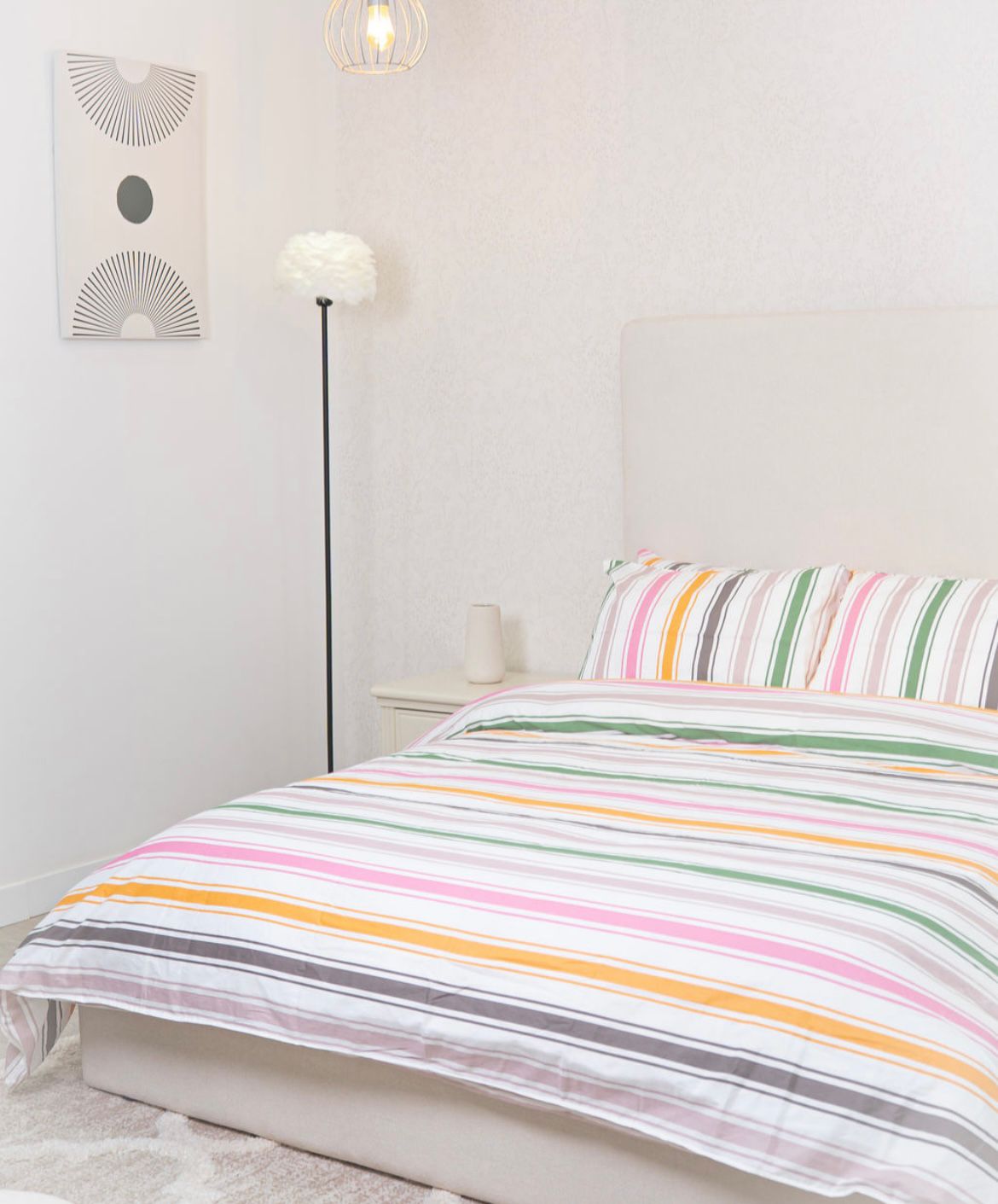 Sabanas 100% algodón 800 hilos Lineas rosadas